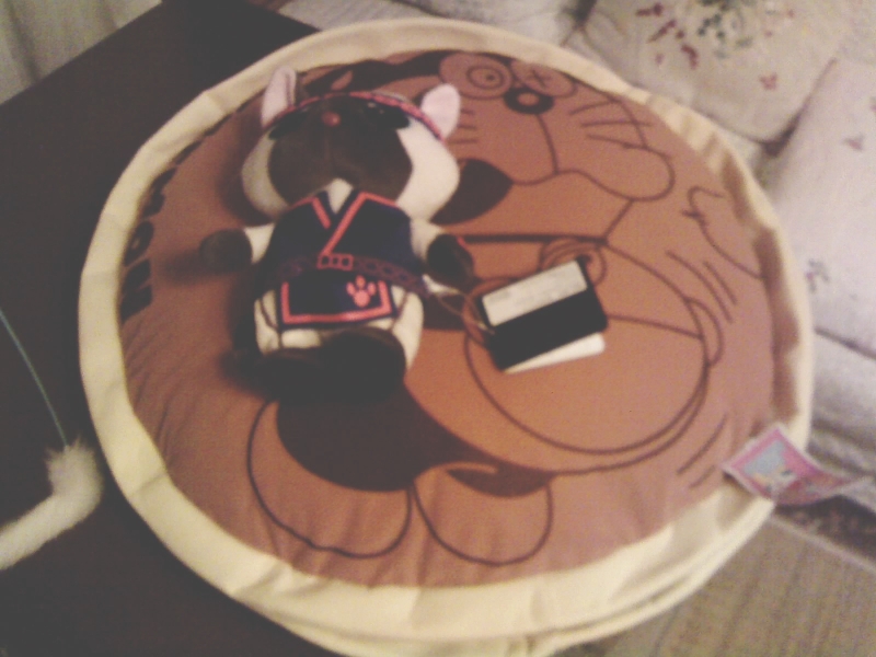ドラえもんがプリントされた直径60cmはあろうどら焼き型クッション = 1000円ぐらいでGet!